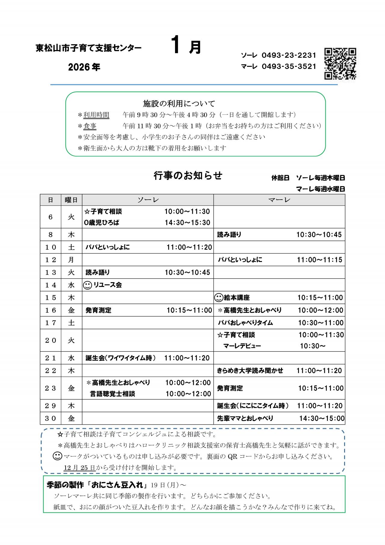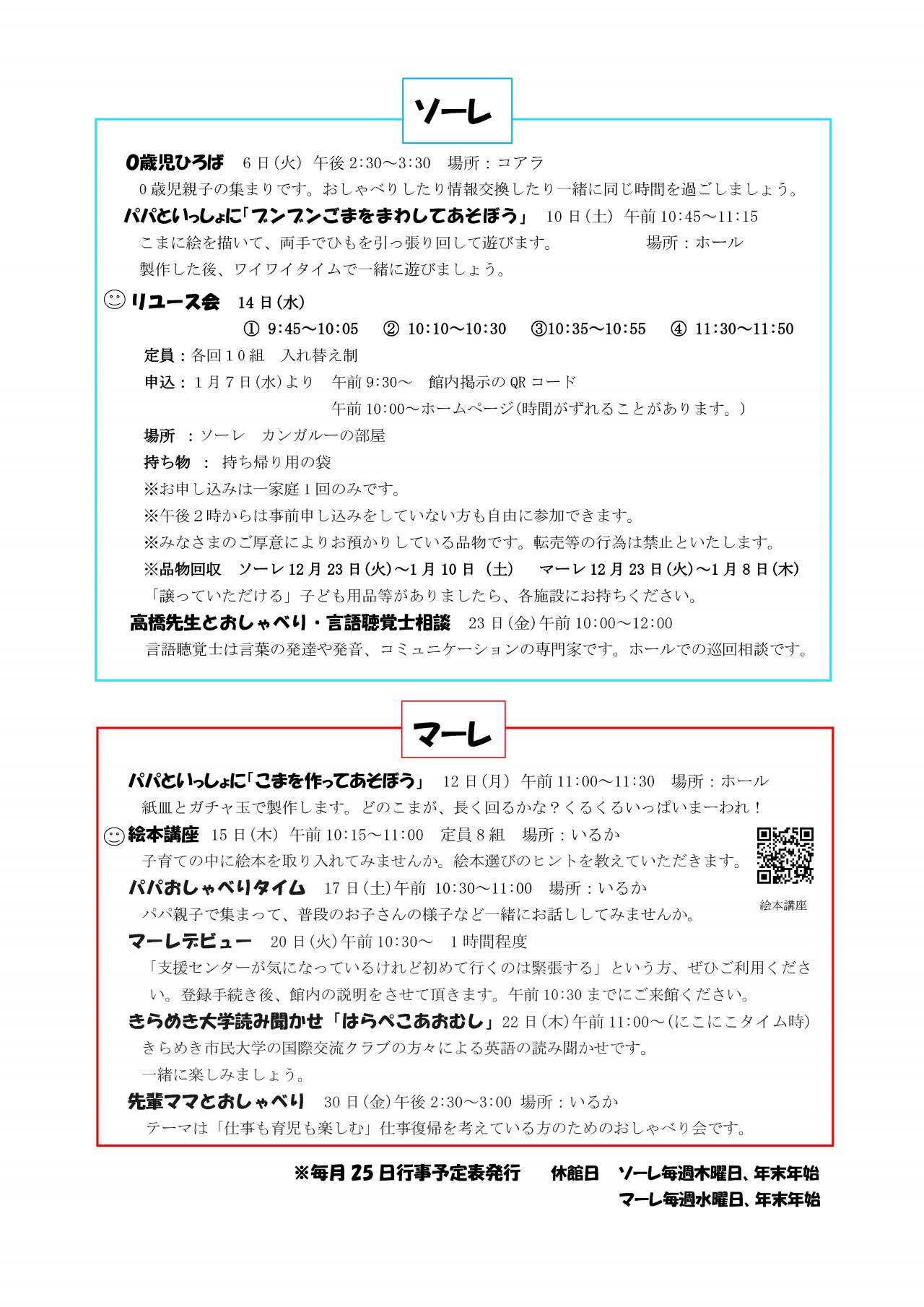 ソーレ・マーレ)1月行事予定表