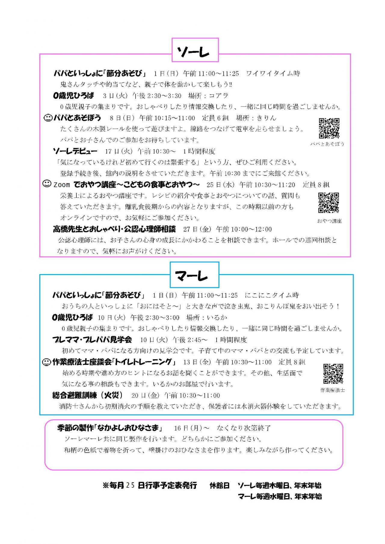 マーレ)2月行事予定表