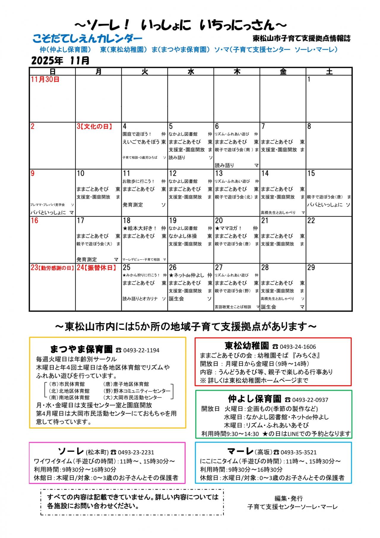 子育て拠点情報誌(11月)