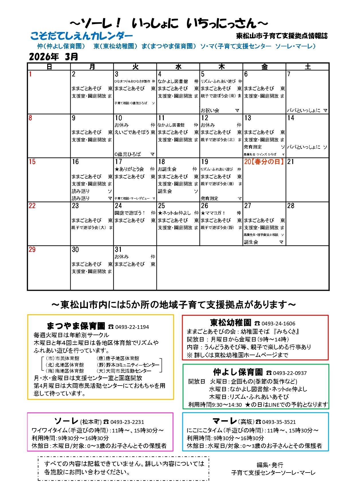 子育て拠点情報誌(3月)