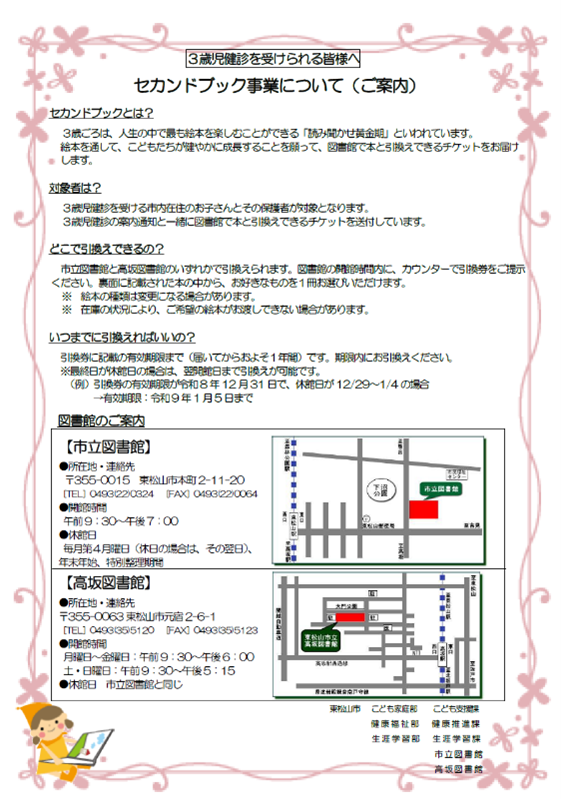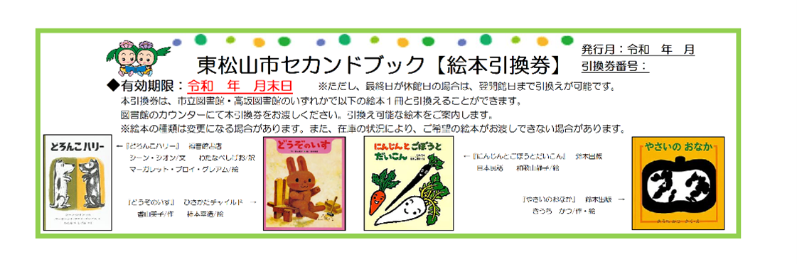 絵本の引換えは、東松山市立図書館・高坂図書館にて行っています。